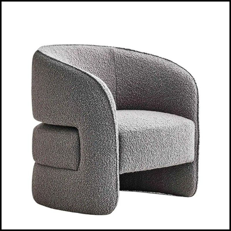 rembourré et couvert de tissu bouclé gris crème de haute qualité.