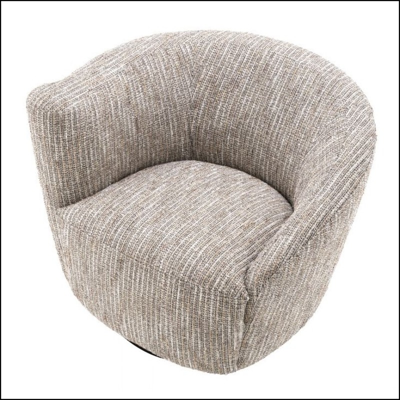 Couvert de tissu beige Mademoiselle et repose sur une base pivotante noir.