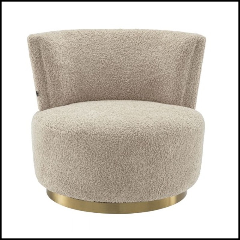 Fauteuil Alonso, avec base pivotante finition laiton brossé,