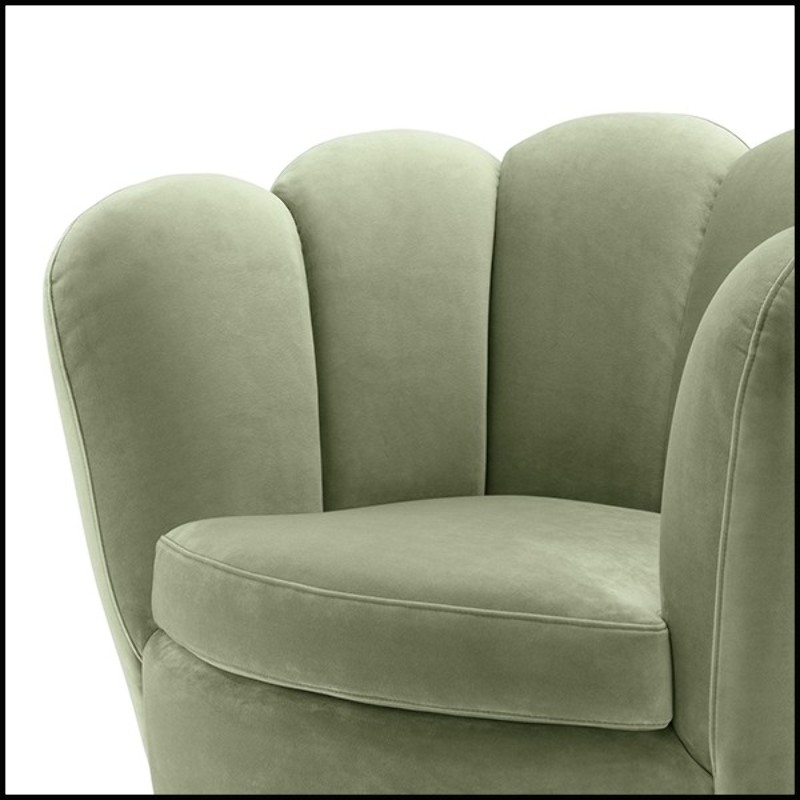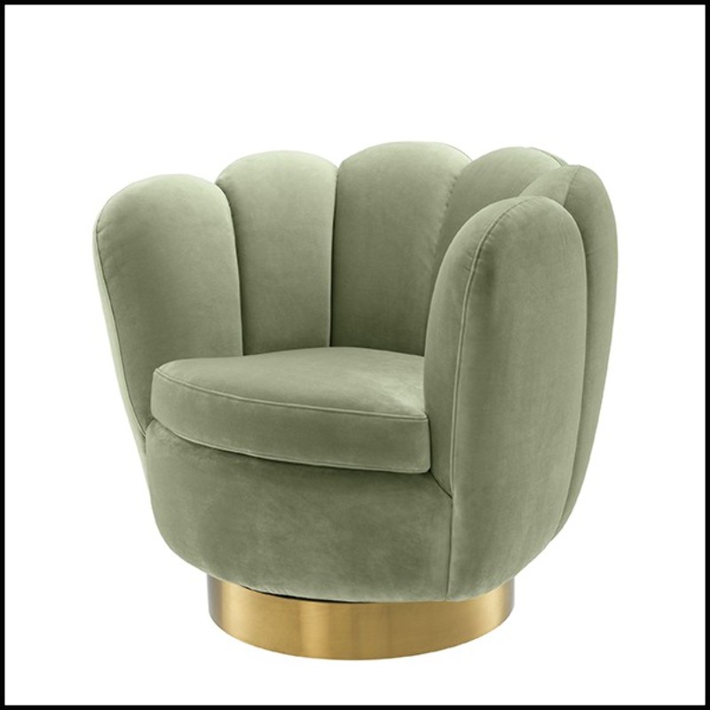 Fauteuil Mirage Pistache rotatif avec structure en bois.