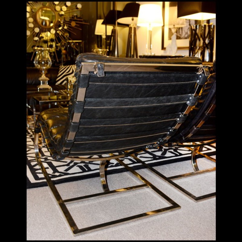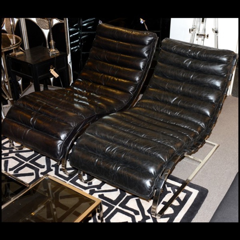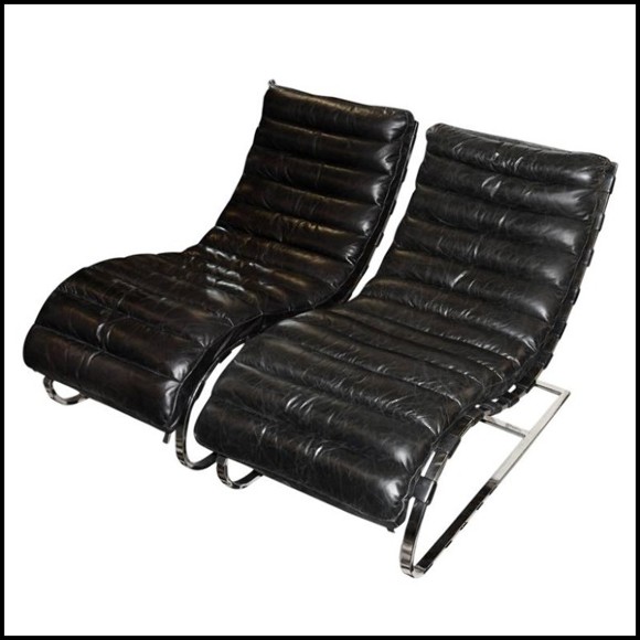 Fauteuil lounge en cuir véritable marron ou noir sur structure en acier inoxydable poli 22-DayBed Set