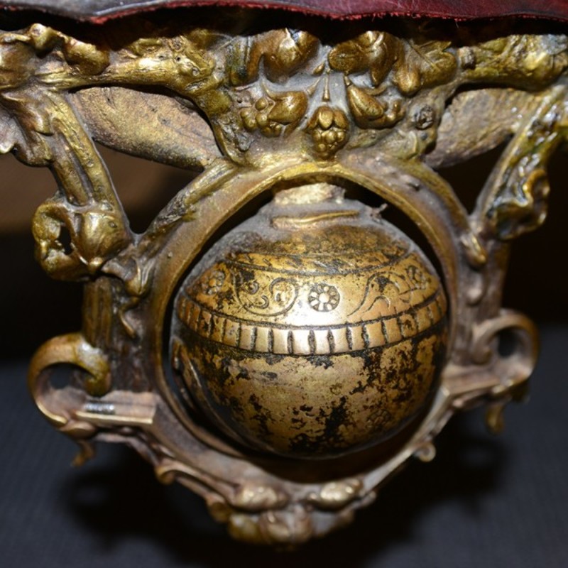 et dos avec véritable peau d'alligator noire. Finitions Bronze.