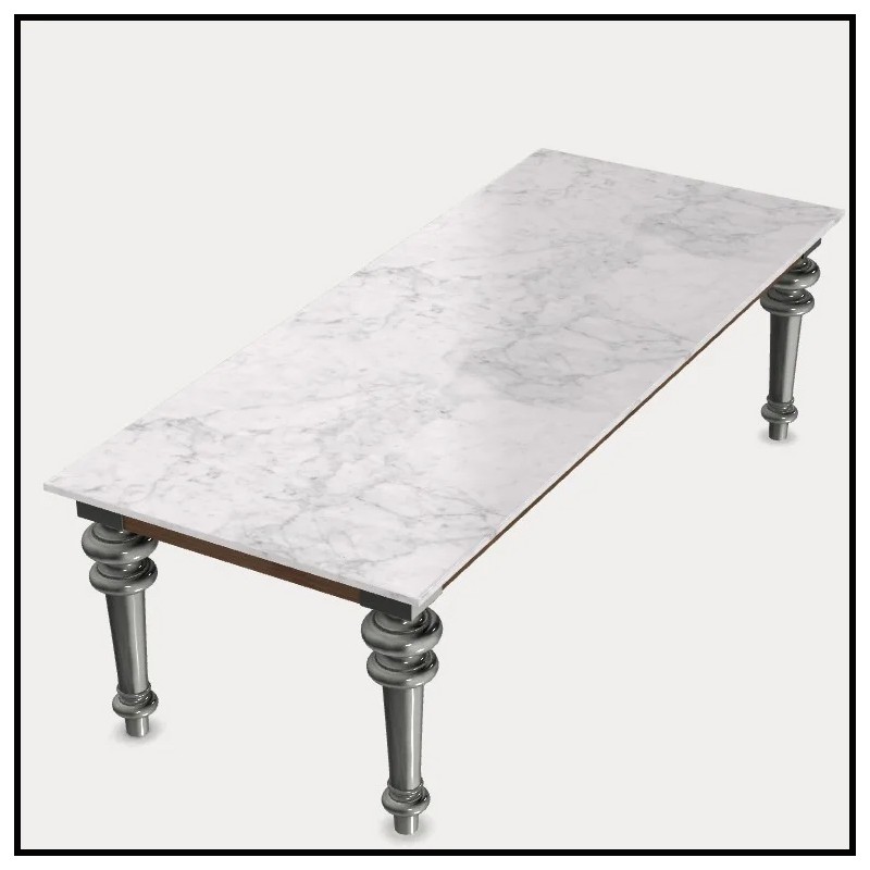 d'aluminium poli et son Plateau fixe en marbre blanc de Carrare.