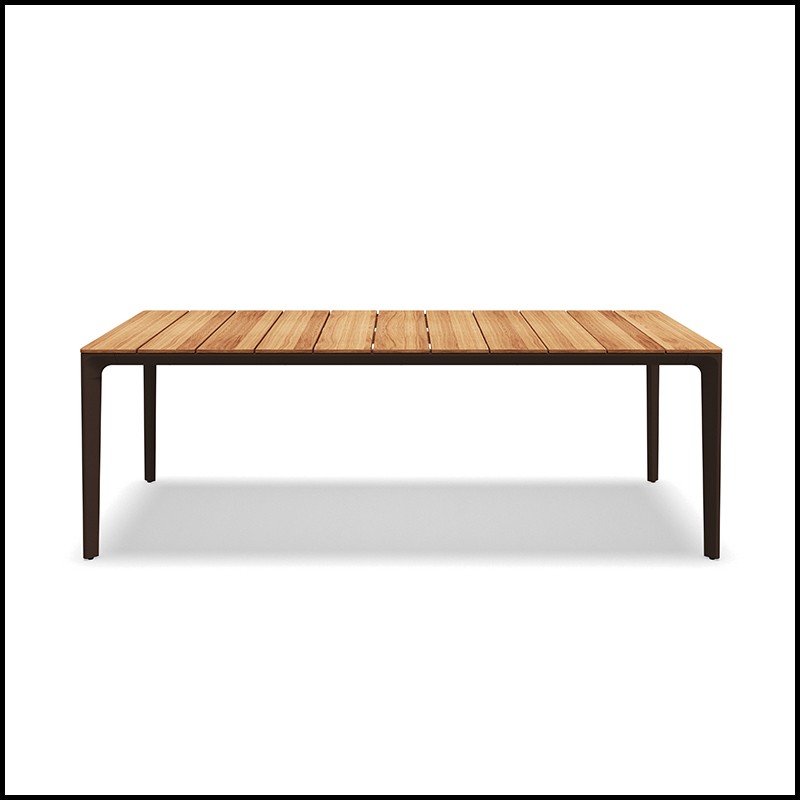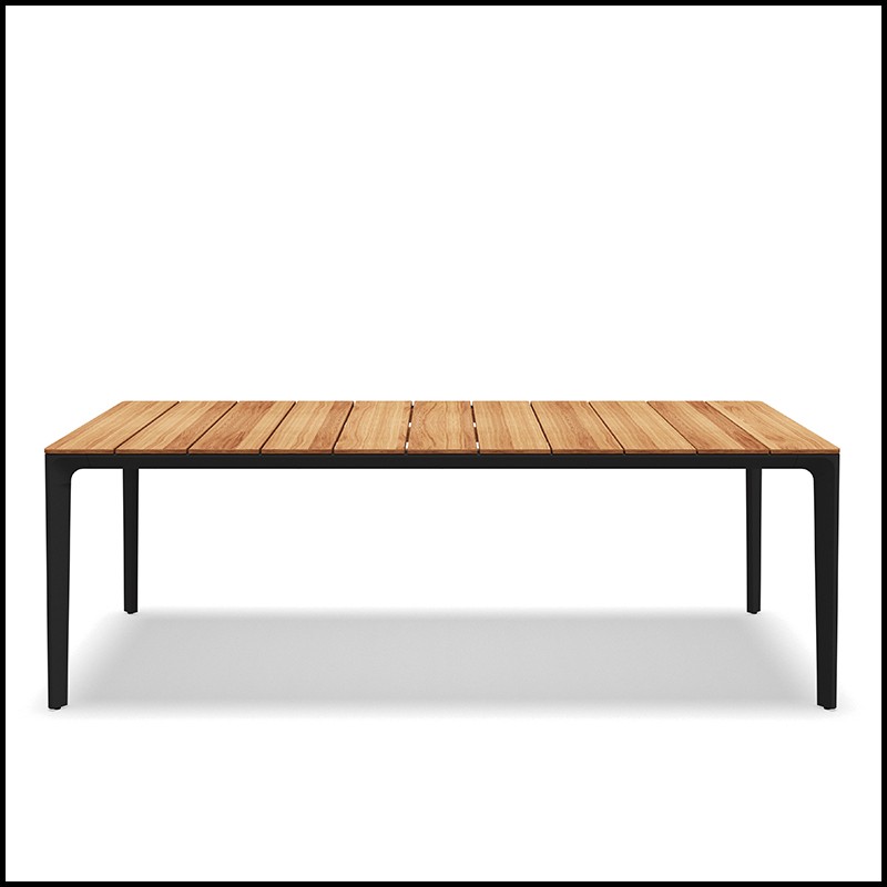 Plateau de table en teck à lattes finition naturelle.