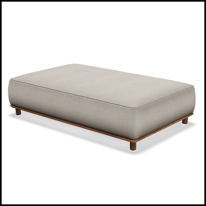Pouf Salina avec structure en teak naturel et acier inoxydable brossé.