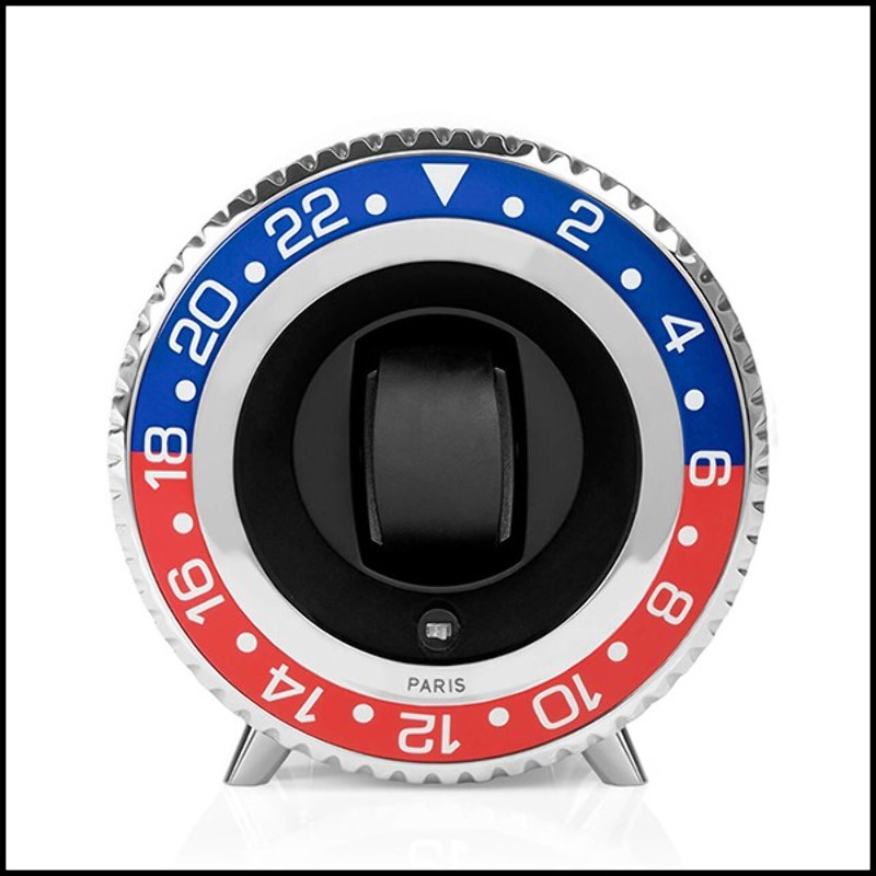 Remontoir de montre en aluminium bleu et rouge finition nickel 185-Red Leather Watch Winder