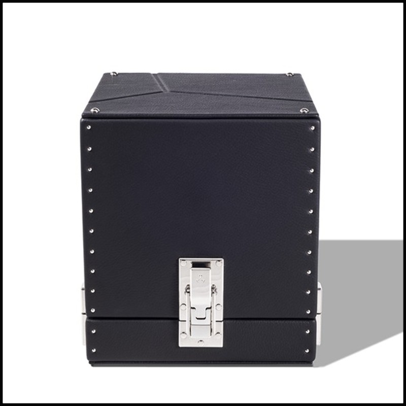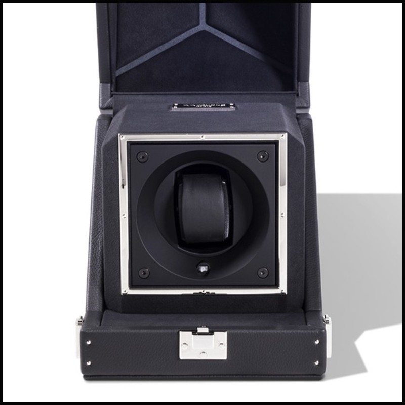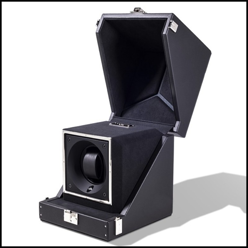 Boîte remonte montre Single Luxwatch Black, recouverte de cuir de vachette grainé noir.