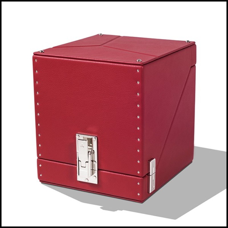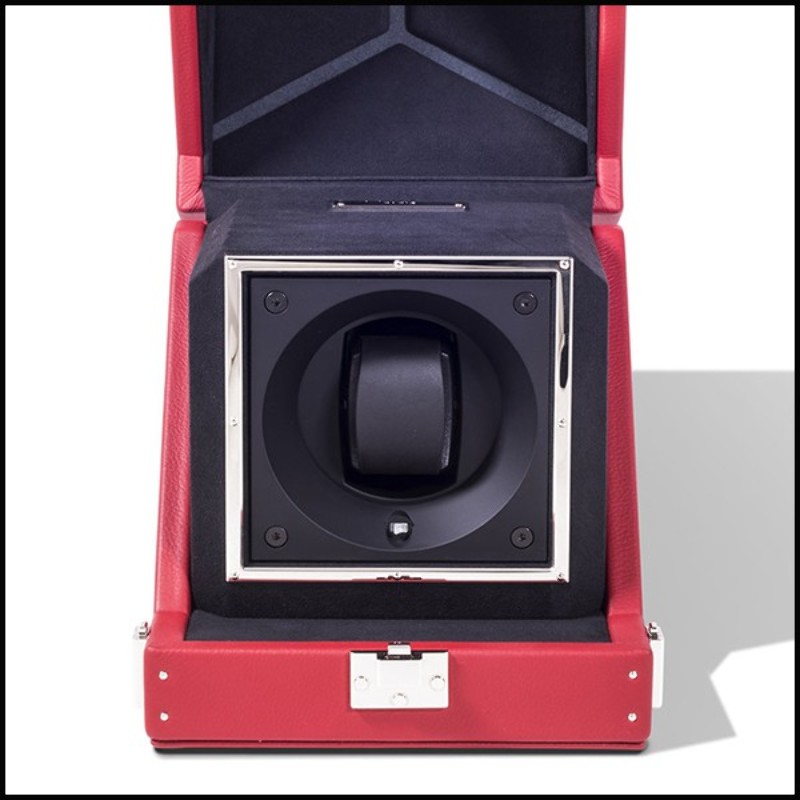 Boîte remonte montre Single Luxwatch Red, recouverte de cuir de vachette grainé rouge.
