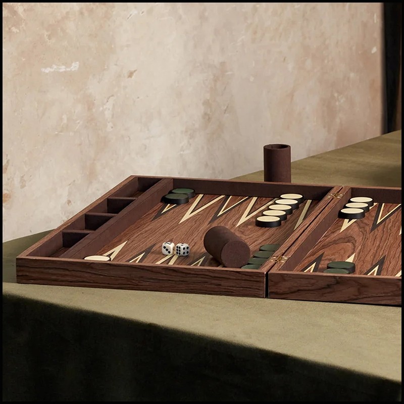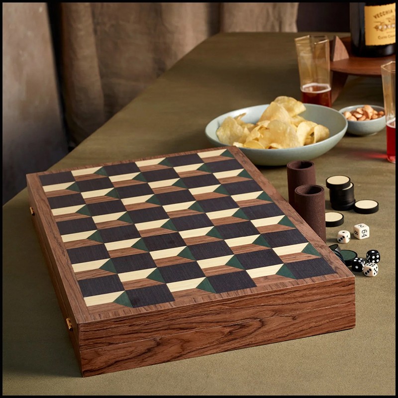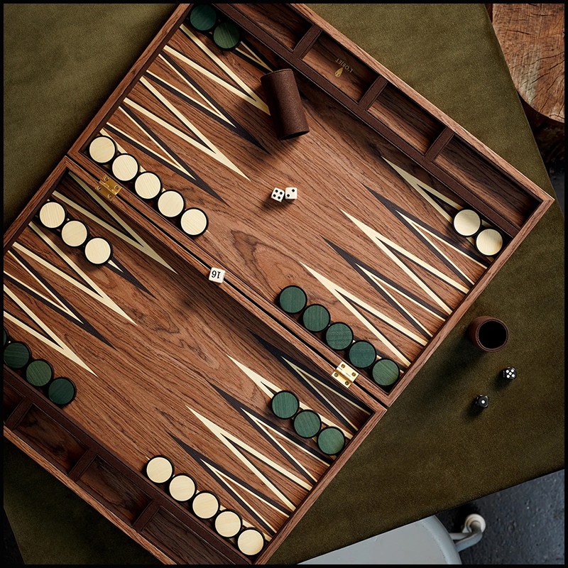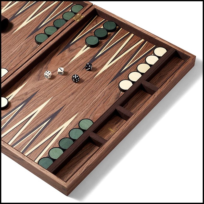 et pions en ivoire et support en cuir suédé de couleur vert anglais.