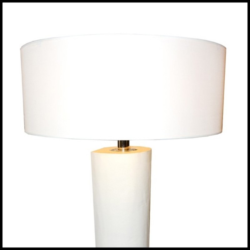 en tronc de bois résineux couvert de cuir véritable blanc.