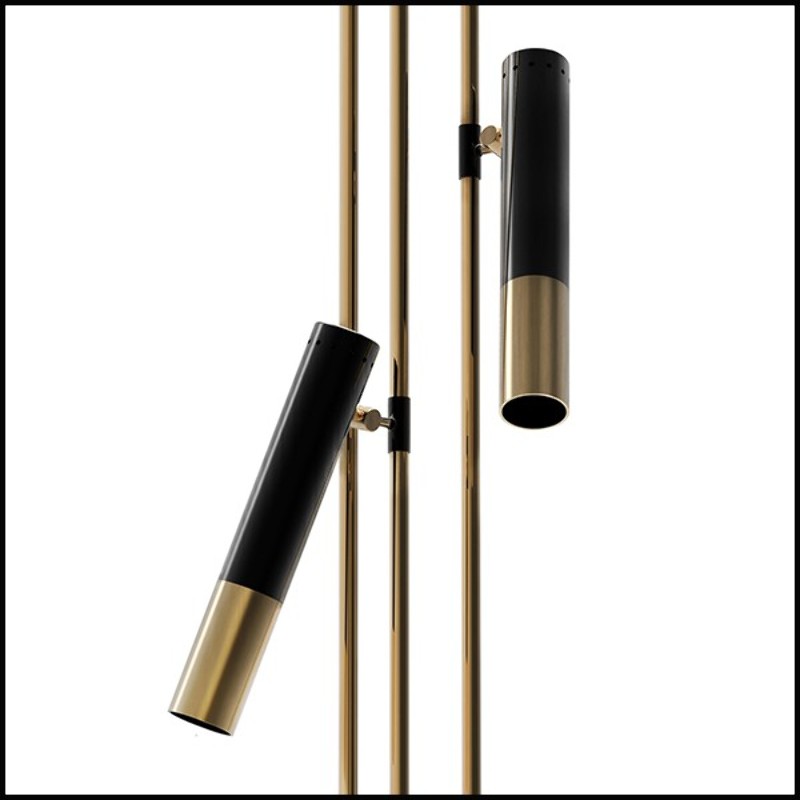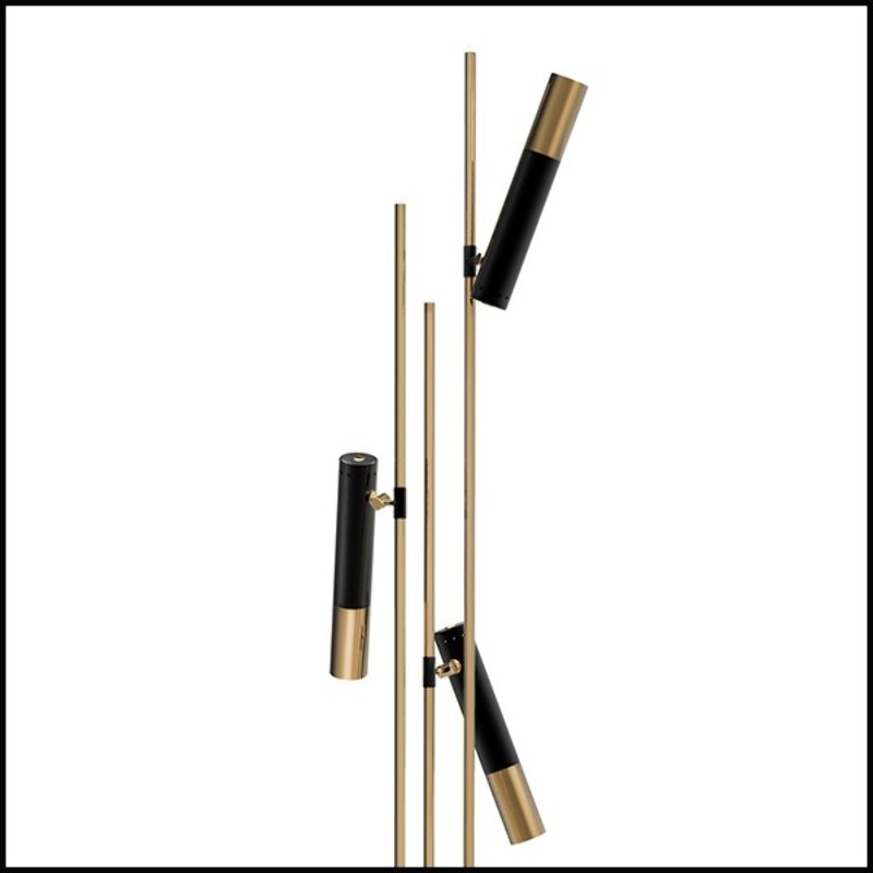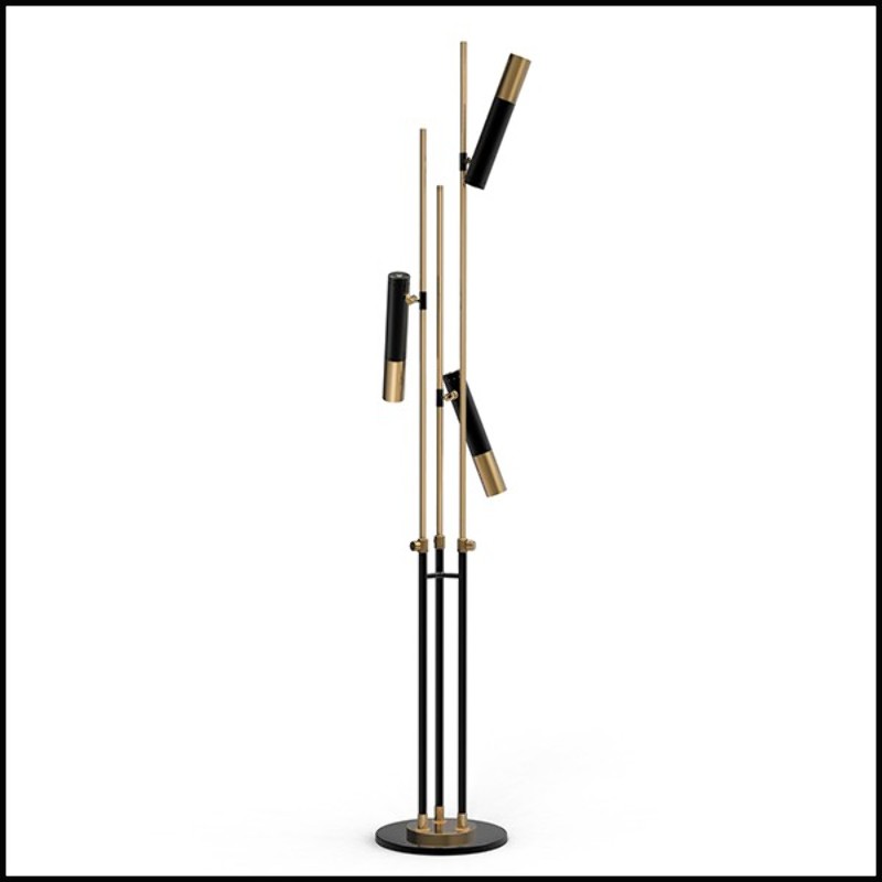 Lampadaire Spike avec base et 3 bras en laiton finition noir