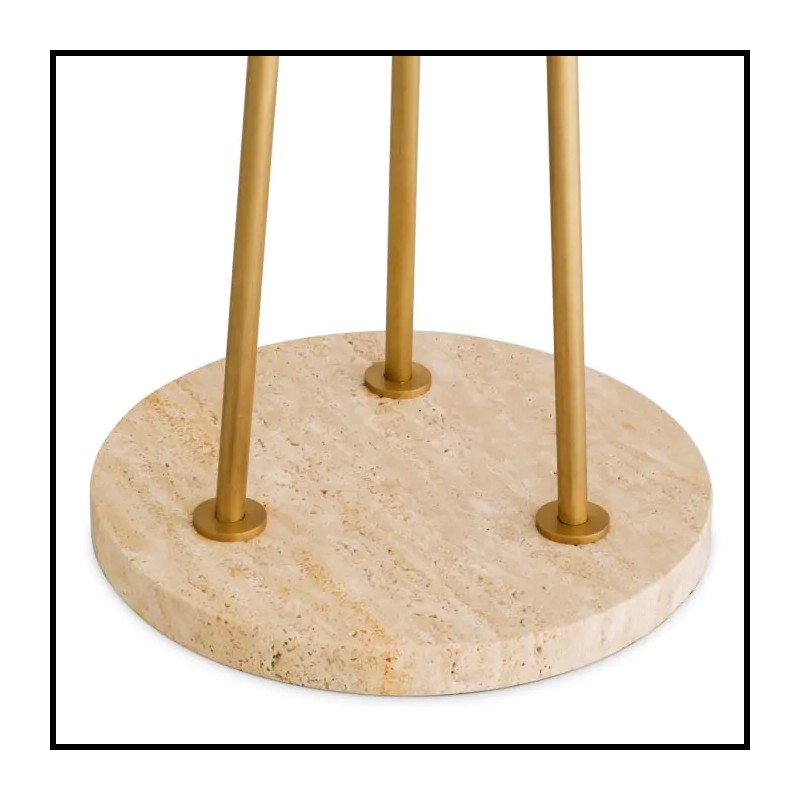 Sa base ronde en travertin avec trois tiges en laiton antique