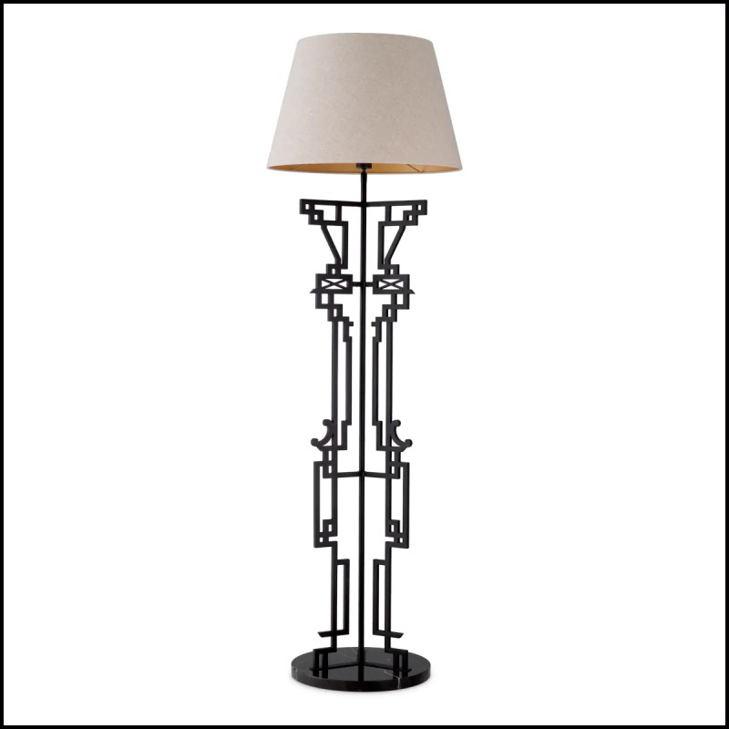 Finition noir mat et abat-jour en mélange de lin fait main.