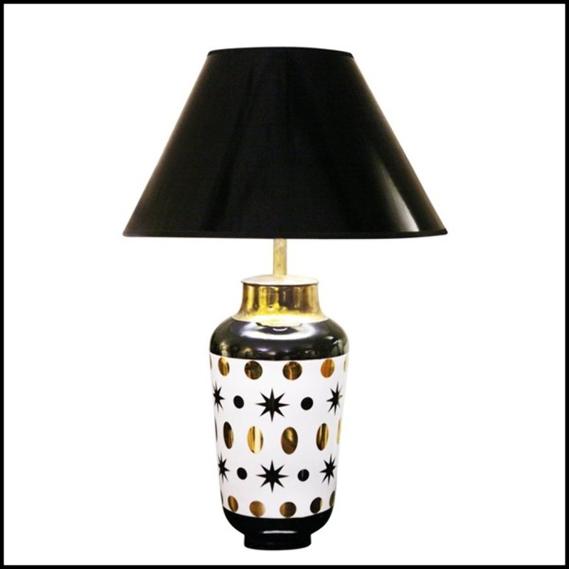 Lampe en porcelaine fait main avec ronds dorés et étoiles noires PC-Black Stars