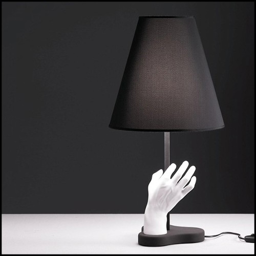 Lampe Handy, avec sculpture d'une main en poudre de marbre