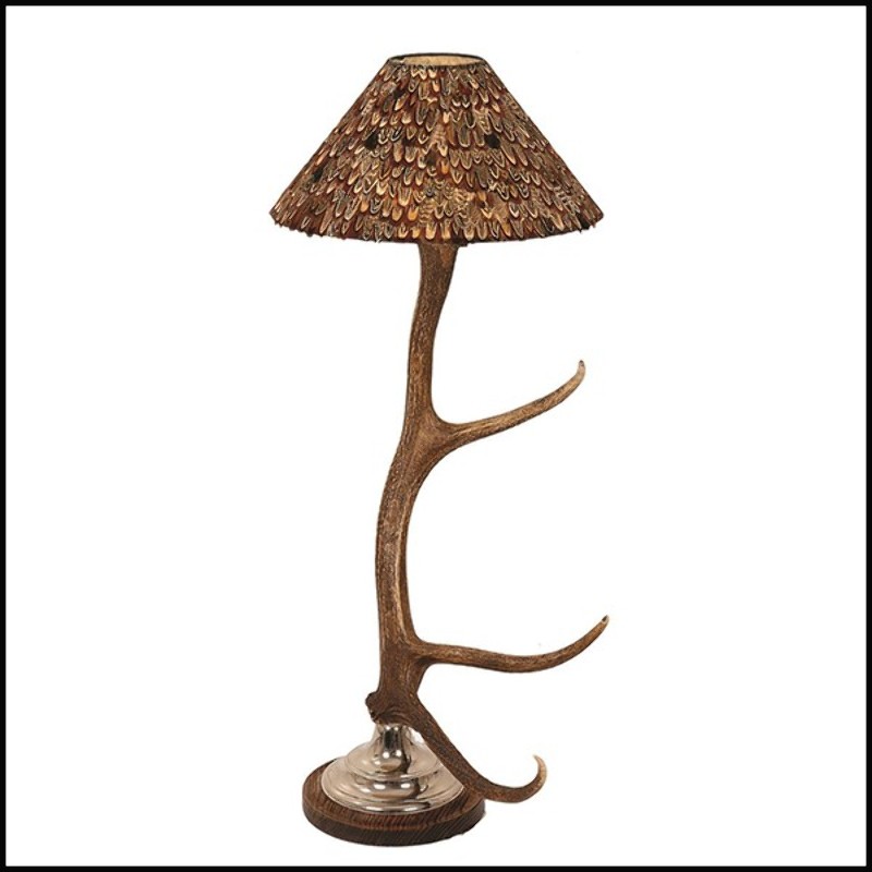 Lampe de table Antler Two avec abat-jour plume de perdrix.