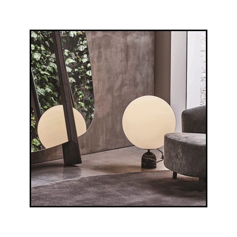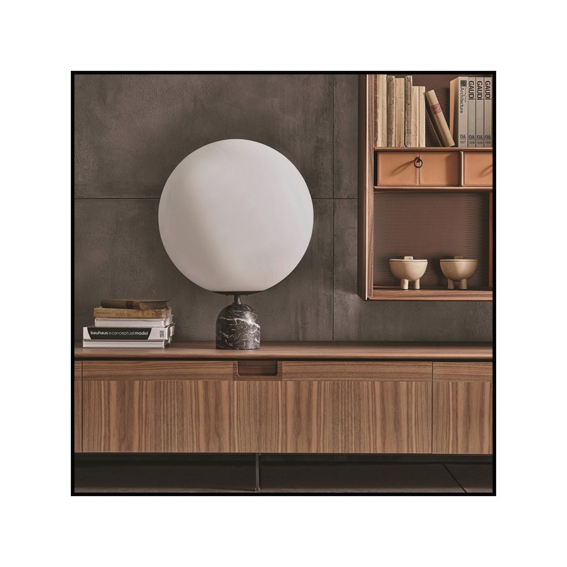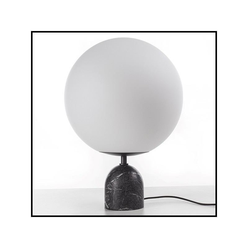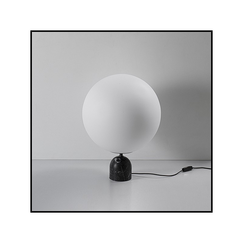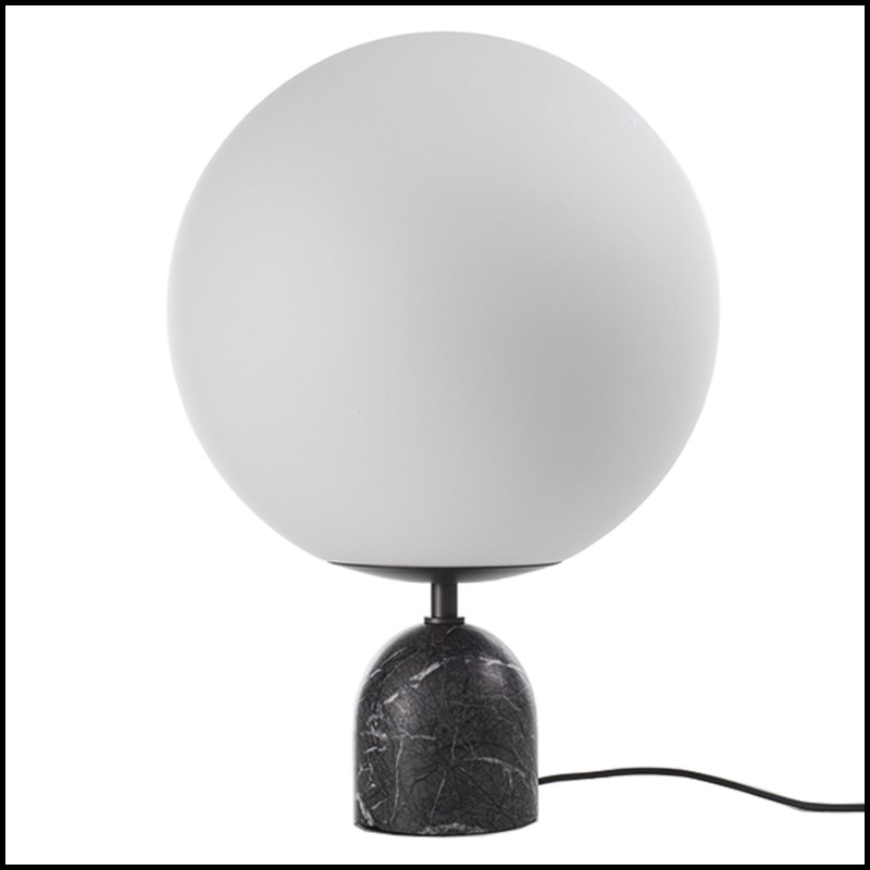 Lampe de table Lio Black Medium dispose d'une base en marbre noir, d'un mât en métal en finition noire.