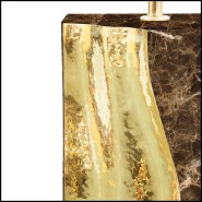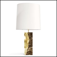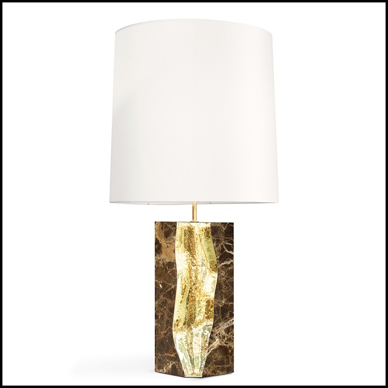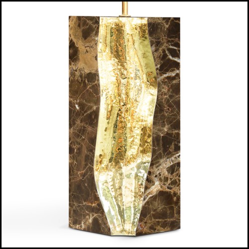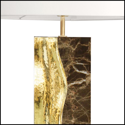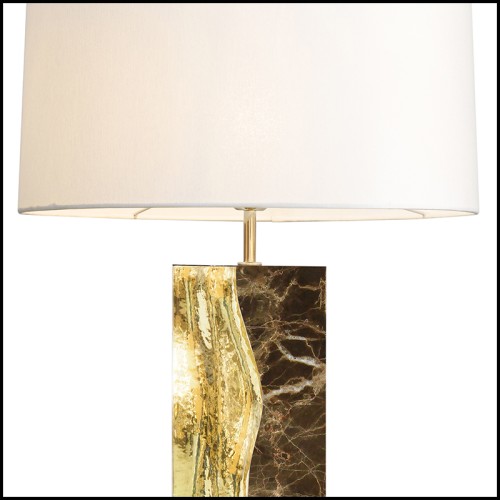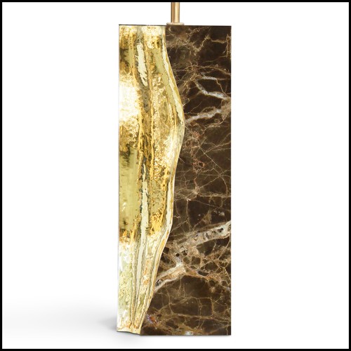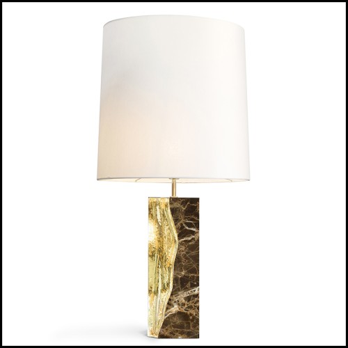 Base comprenant un détail en laiton poli, dont un abat-jour rond,
