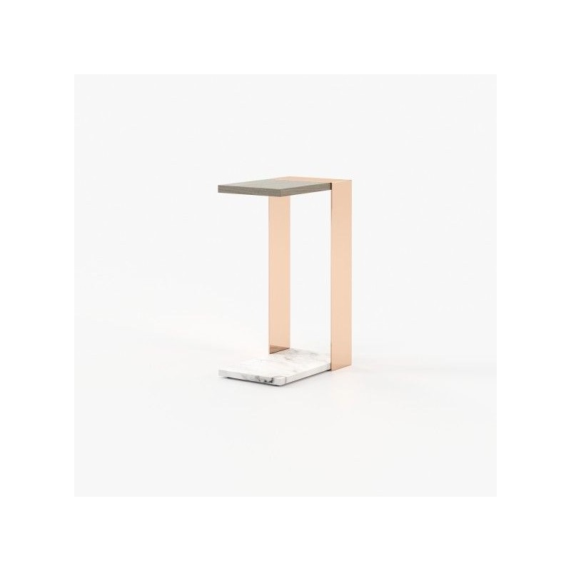 La table d’appoint Poppi se distingue par son matériau principal en bois de noyer mat, associé à des touches de marbre qui ajoutent une touche de sophistication. La structure métallique lui confère une robustesse et une stabilité remarquables.