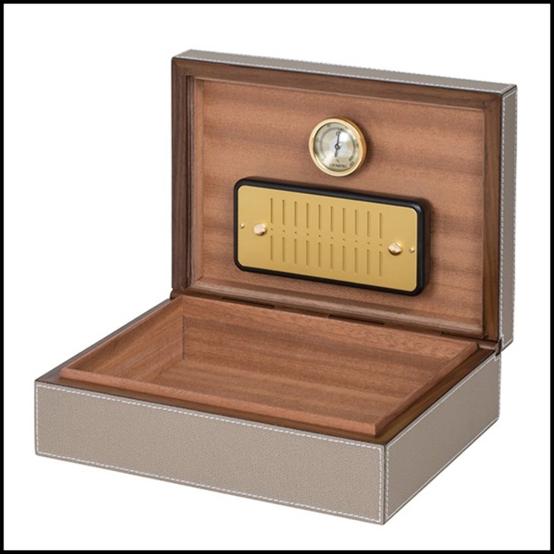 Boîte à cigares avec une doublure intérieure en cèdre finition brun clair.