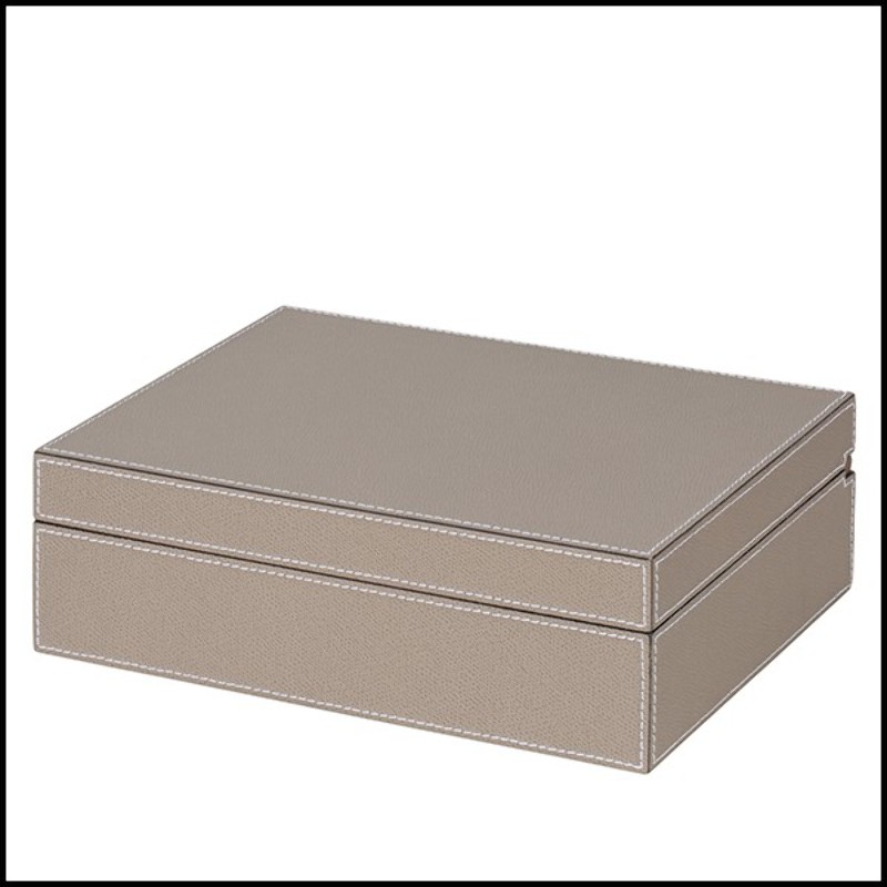 Structure principale en bois de noyer recouvert de cuir grainé de haute qualité de couleur grise.