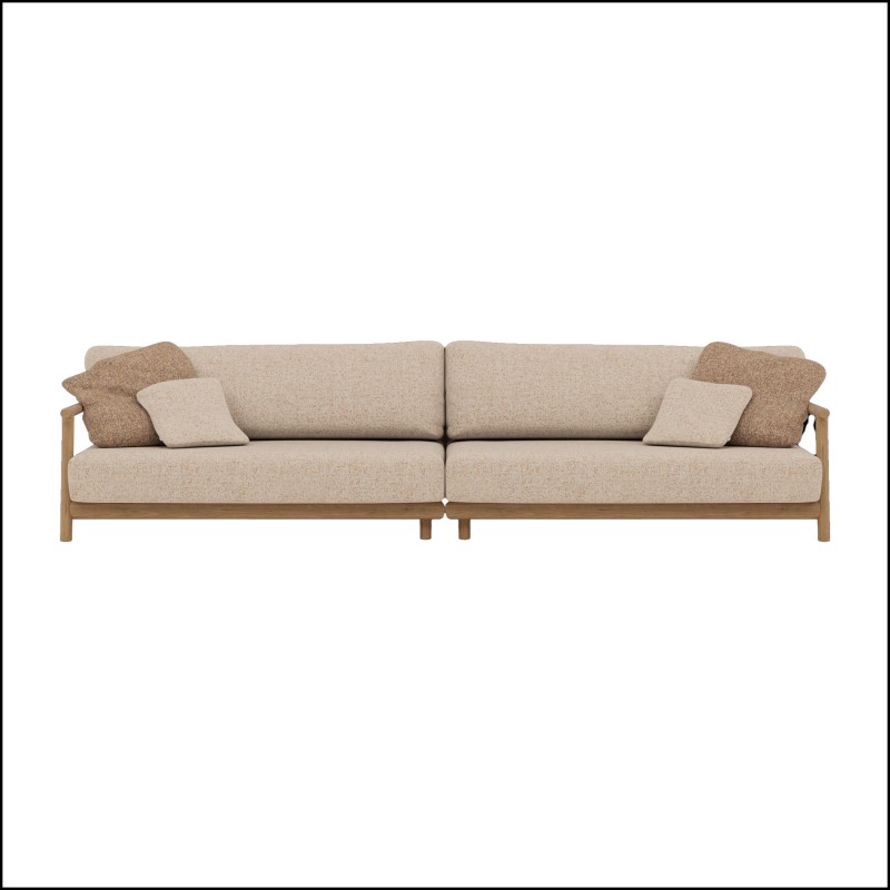 Canapé d'extérieur Muyu en teck avec des joints doux et arrondis en teck.