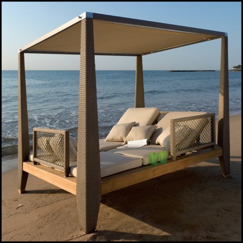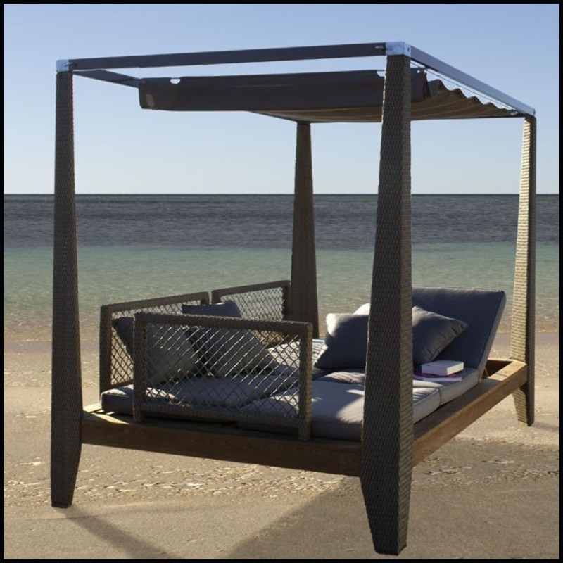 et ses mâts en wicker brossé chanvre, ce lit de jardin design offre une expérience