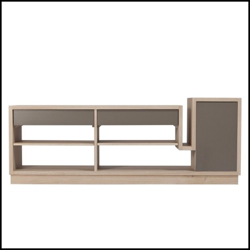 Avec 2 tiroirs et 1 porte en mat vernis gris.