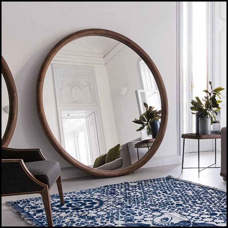 avec un verre miroir plat rond. Peut être accroché comme miroir