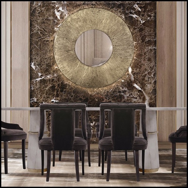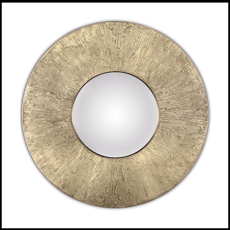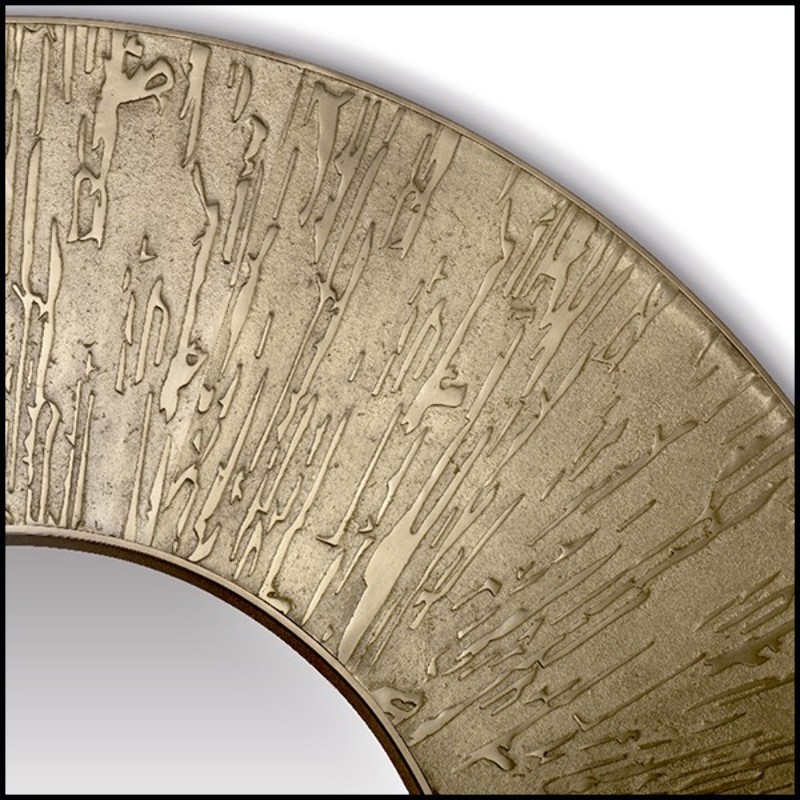 Ce miroir rond séduit par son esthétique sculpturale et son originalité, apportant profondeur et personnalité à votre décoration murale. Le travail du laiton met en valeur un savoir-faire artisanal et crée de subtils jeux de lumière.