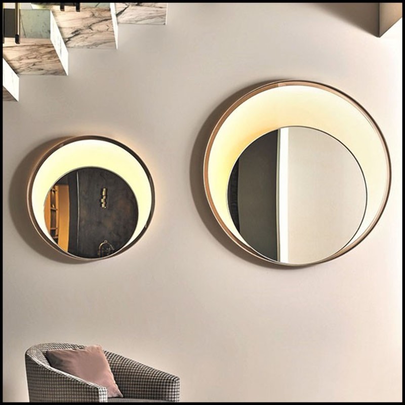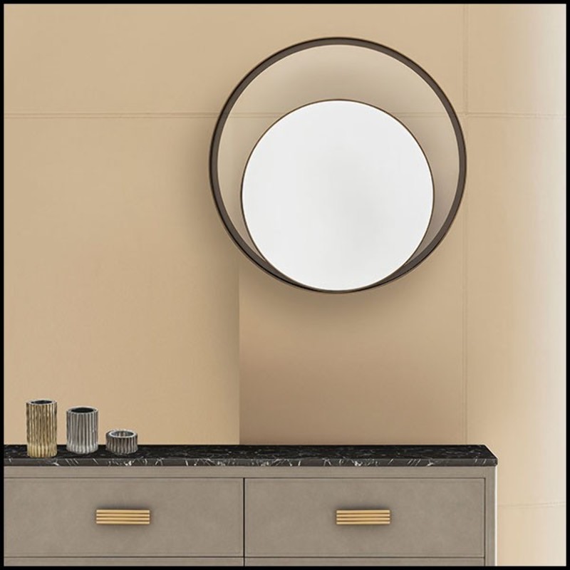 Verre miroir rond transparent avec un anneau en laiton massif finition bronze,