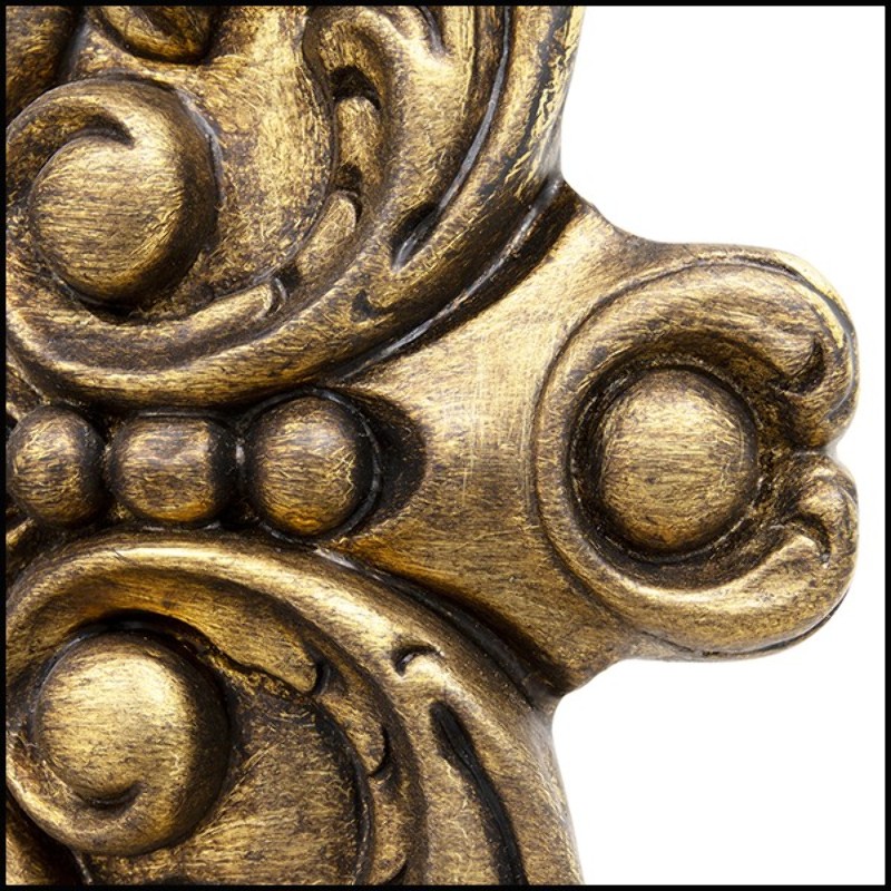 présente une structure en bois massif en finition laiton vieilli.