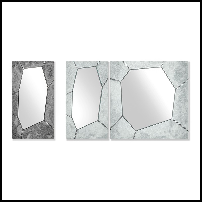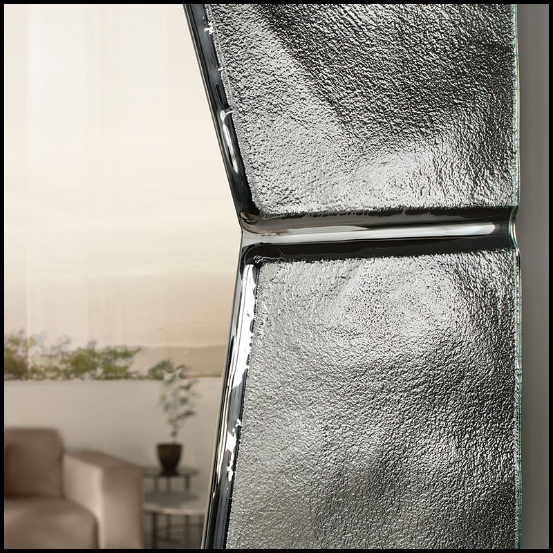 Son cadre en verre de 6 mm, texturé et décoré à la main, associé à un miroir plat