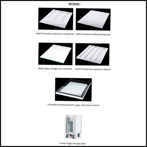 - Tablette porte-bouteilles en aluminium dibond, prix: 80,00€.
