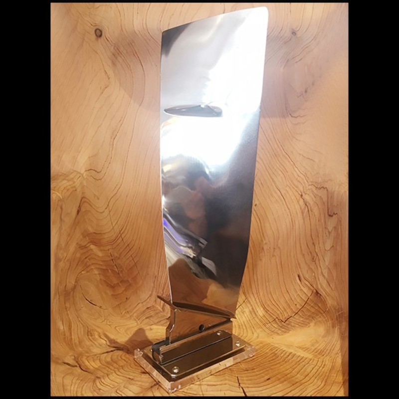 Elle peut s’apparenter de prime abord à une sculpture contemporaine comme on a l’habitude d’en voir fréquemment dans des ateliers de créateur. Il s’agit en fait d’un élément qui a traversé les ciels pendant plus de 3 décennies. Non vous ne rêvez pas, c’est bien une ailette d’un réacteur d’Airbus A320 qui s’offre une seconde jeunesse.