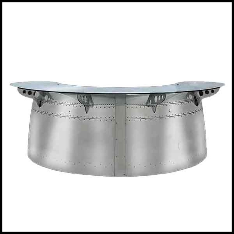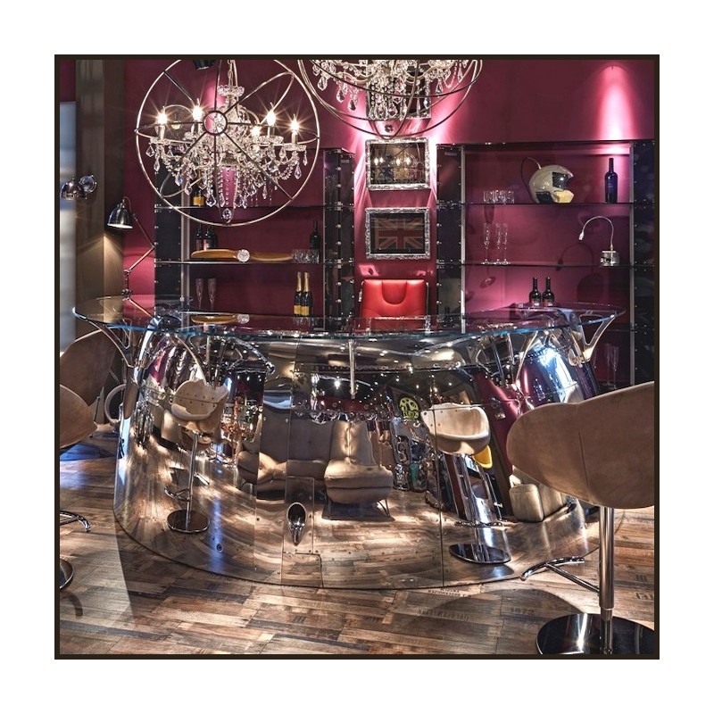 Bar Boeing 747 fabriqué avec une entrée d'air de Boeing 747 en aluminium poli.