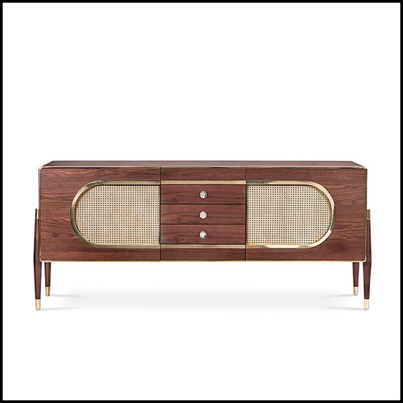 Buffet Walnut Straw doté d'un canage en paille de noyer,