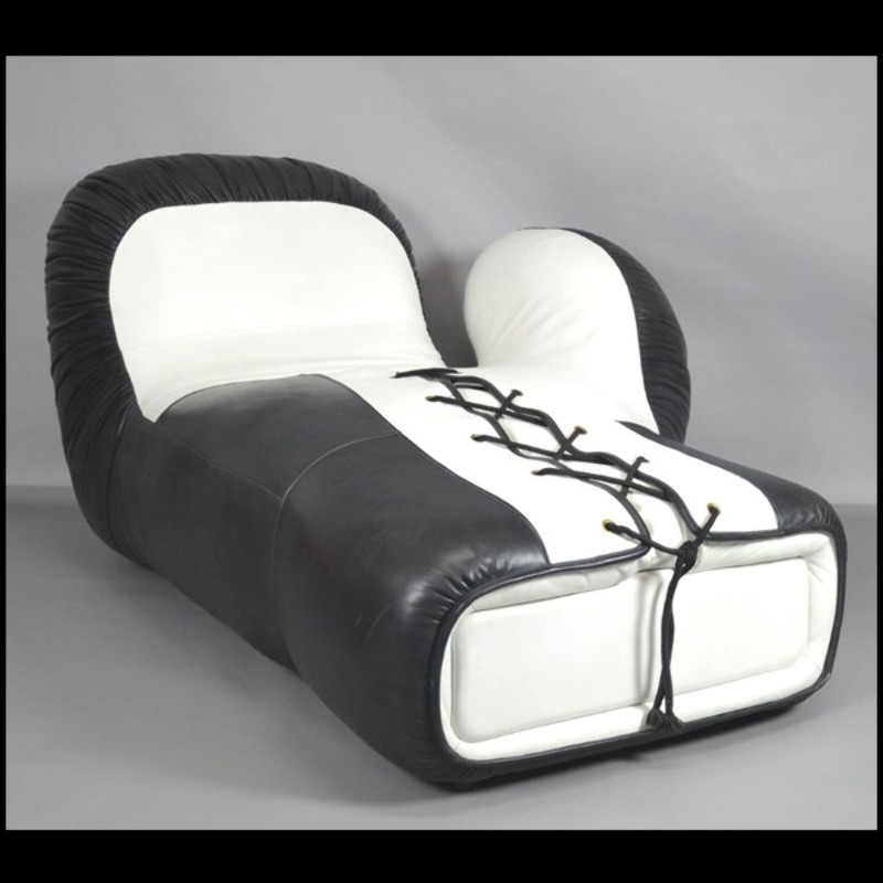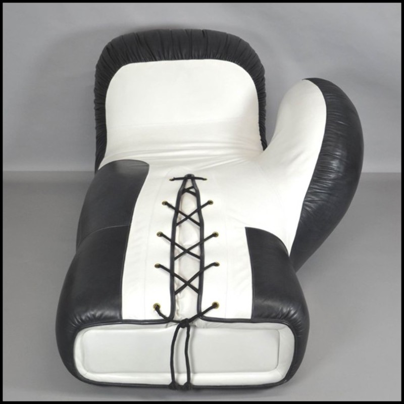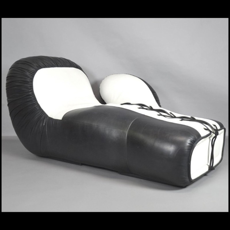 Cet incroyable fauteuil lounge est une réédition du gant de boxe noir et blanc créé dans les années 70 par la célèbre et luxueuse maison De Sede, fabriquant suisse de mobilier haut de gamme, depuis les années 60.
