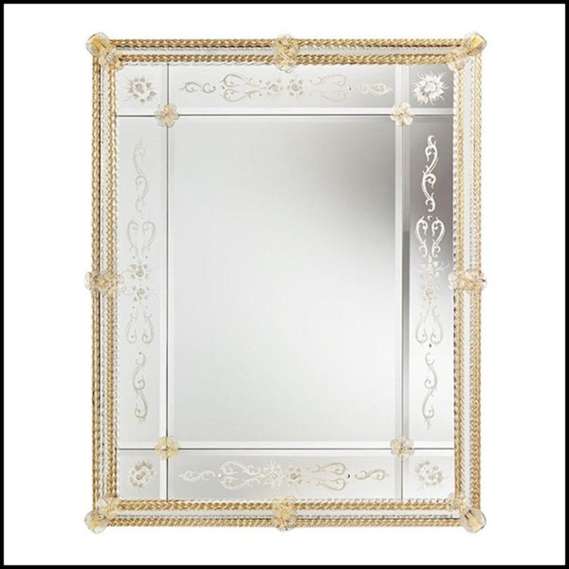Cadre en verre biseauté et gravé avec finition miroir clair.