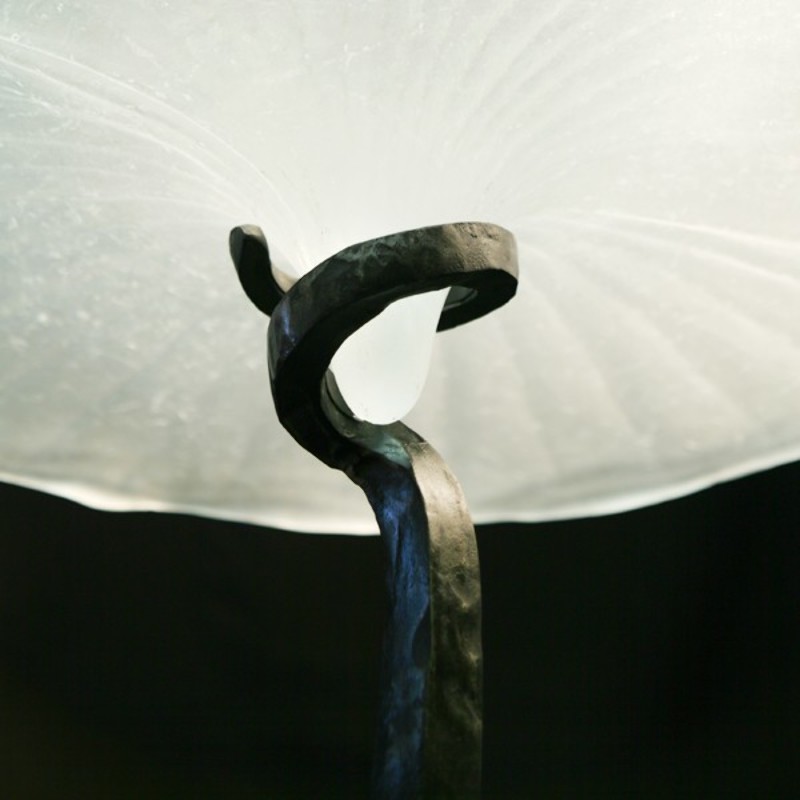 Table d'appoint avec plateau 1 feuille de nénuphar en crystal de Baccarat sur pieds en fer forgé PC-Nénuphar 1