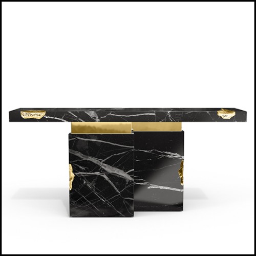 Table basse Goldfinger dotée d'une structure en laiton poli.