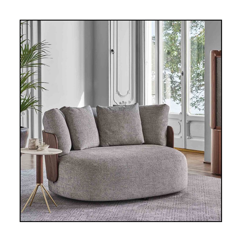 à son tissu bouclage et son assise généreuse. Ce mobilier haut de gamme