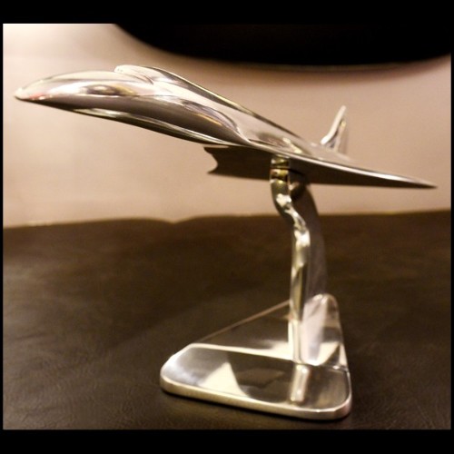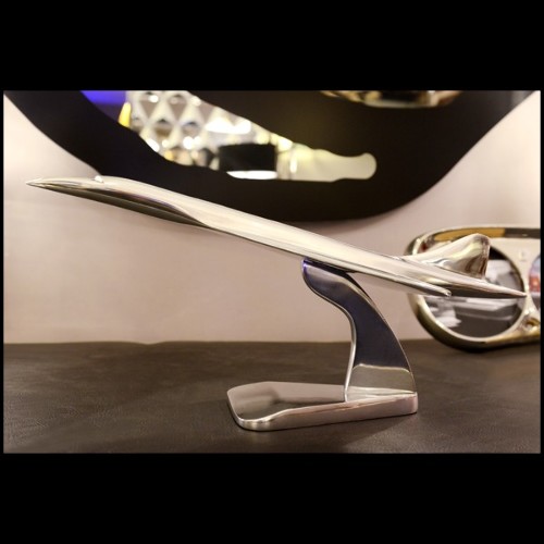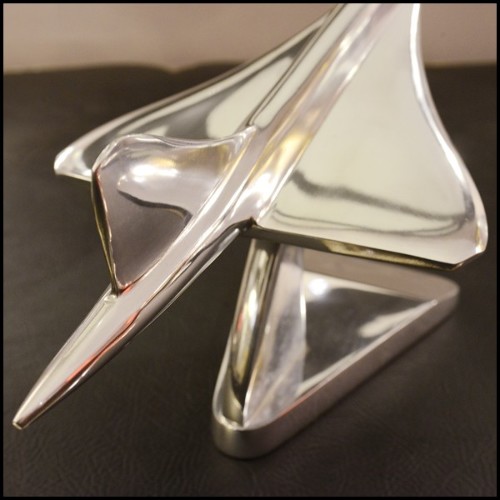Objet Décoratif Concorde sculpture en aluminium poli sur base,