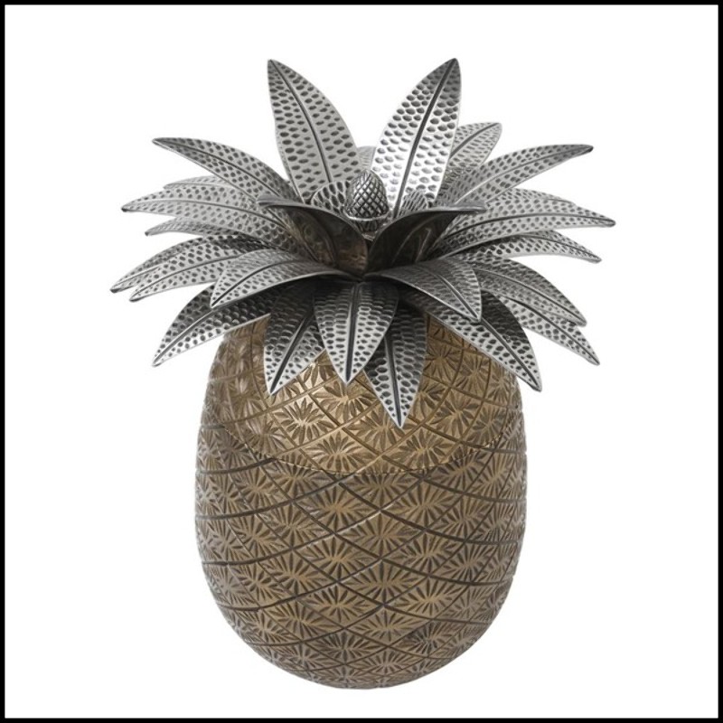 Boîte Pineapple de rangement avec intérieur finition laiton antique.