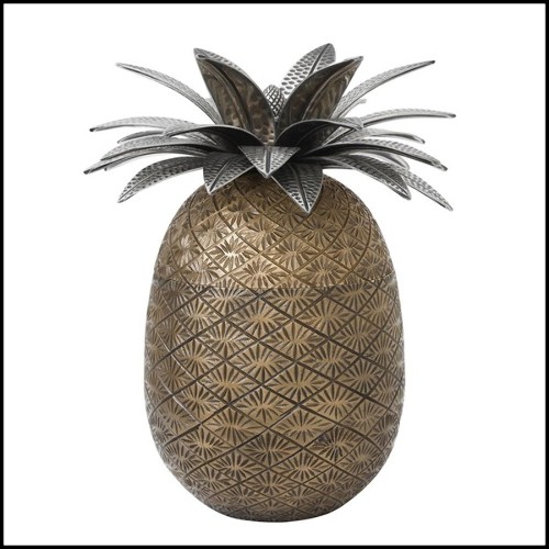 Boîte Pineapple de rangement avec intérieur finition laiton antique.