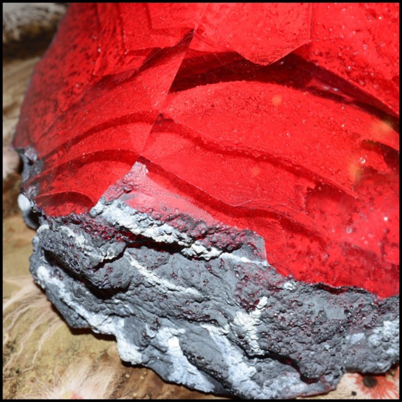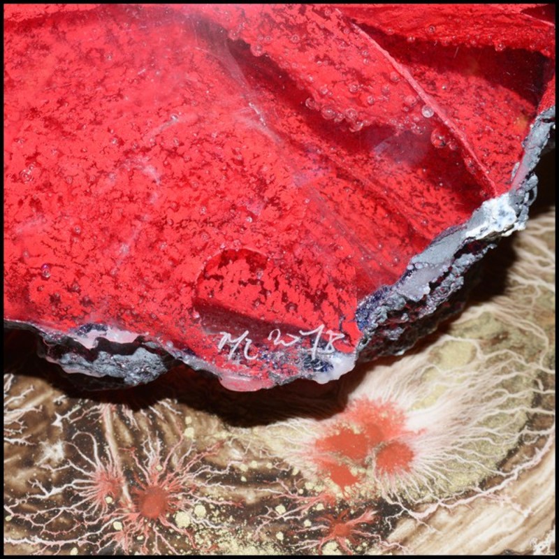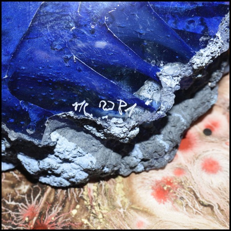 Set de deux sculptures en pâte de verre avec lanières en pâte de verre colorées en rouge et bleue Glass Alchemy