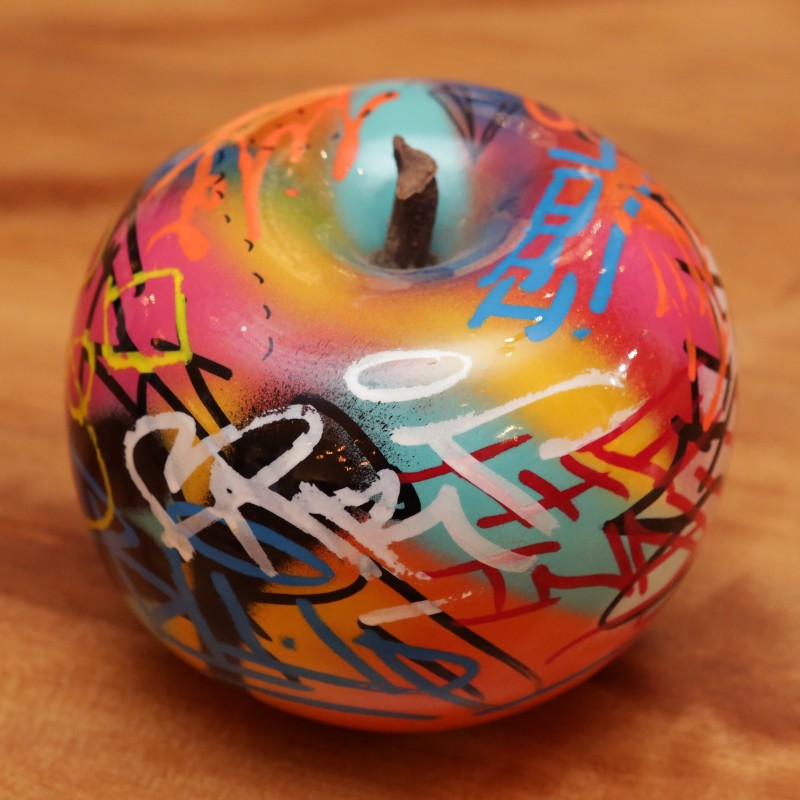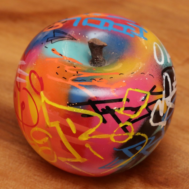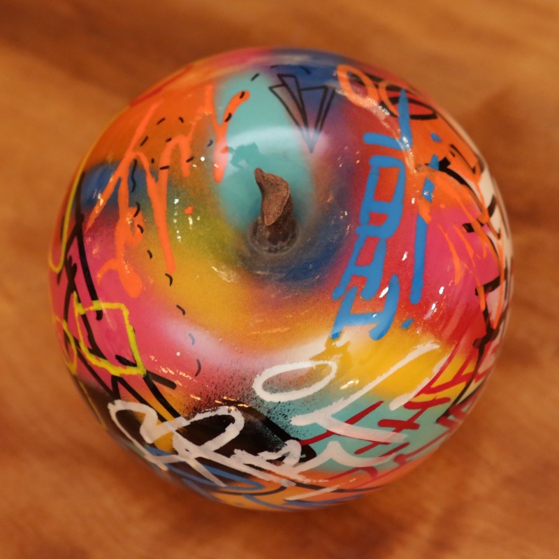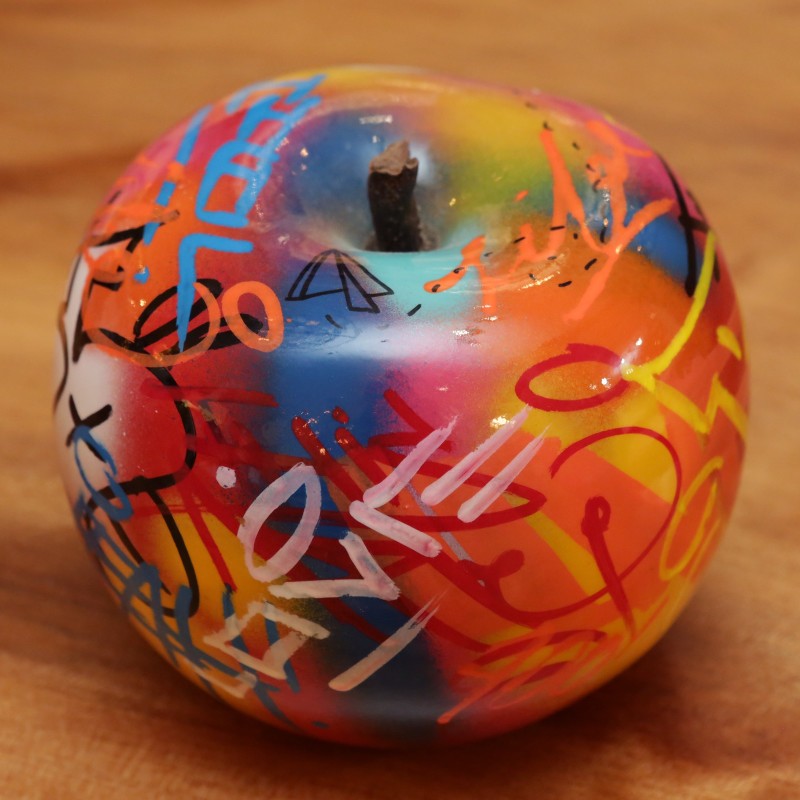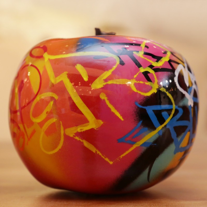 Sculpture Apple Graffiti B, en céramique fabriqués à la main.