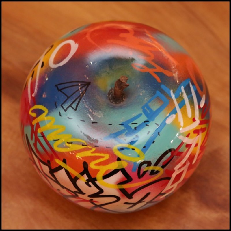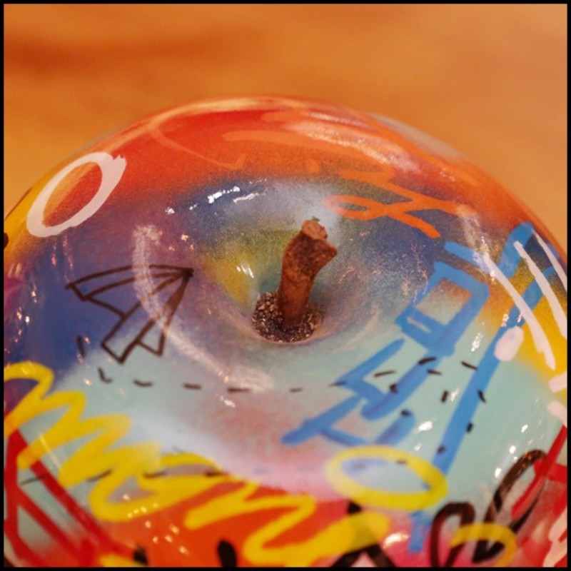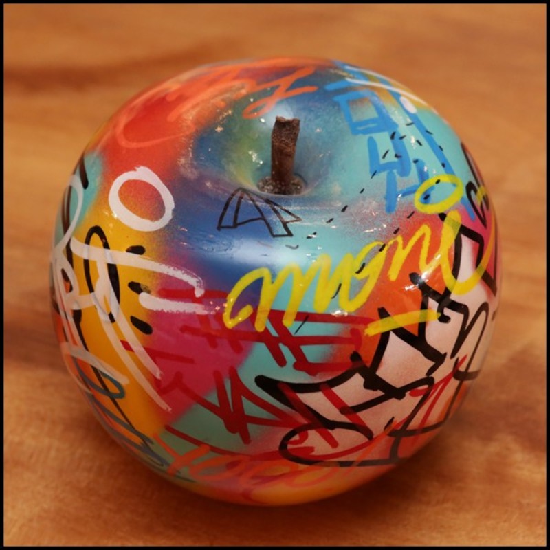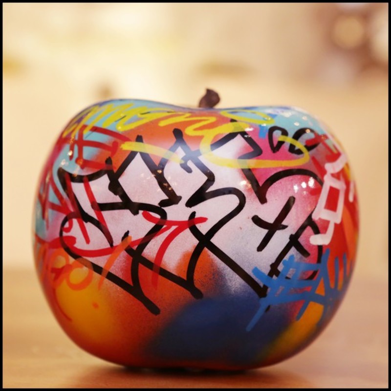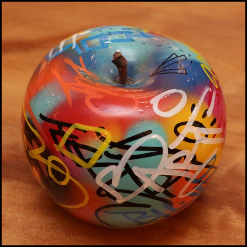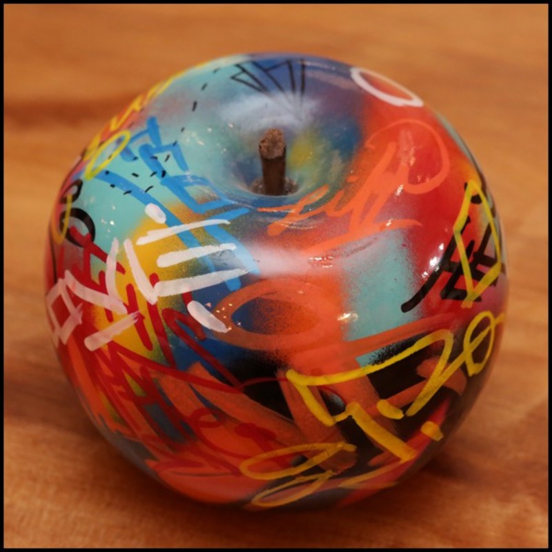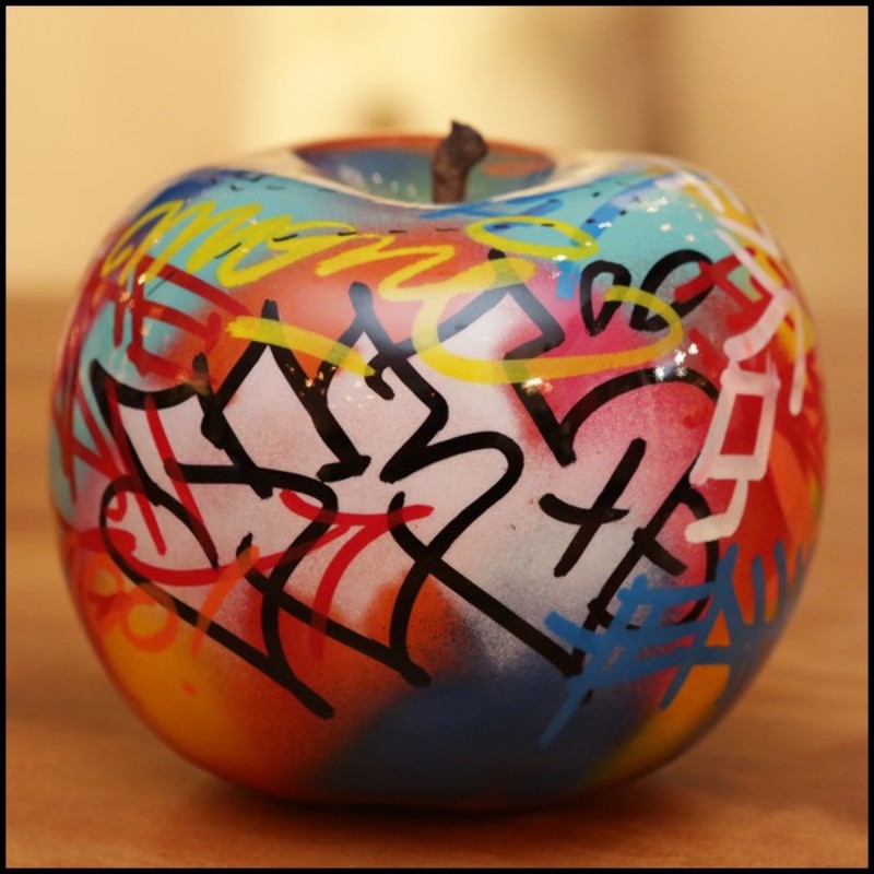 Sculpture Apple Graffiti C, en céramique fabriqués à la main.