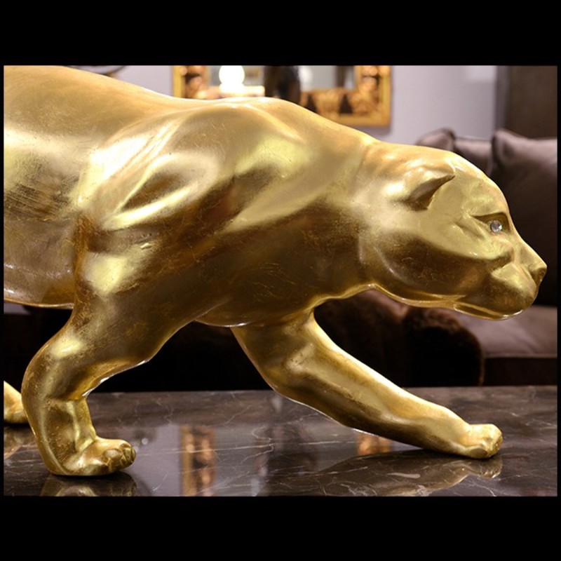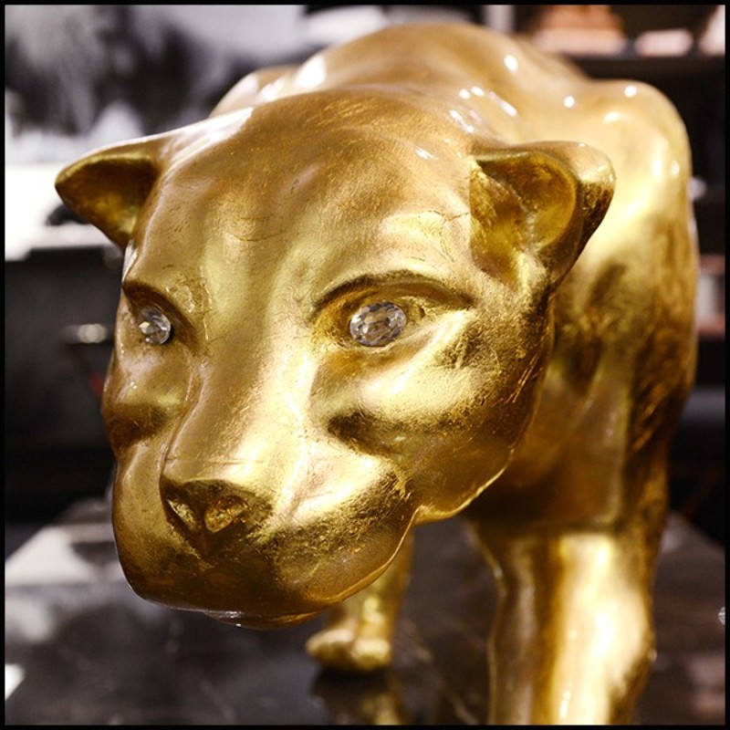Sculpture finition Gold, yeux finition doré en cristal Swarovski PC-Panther in Gold Finish