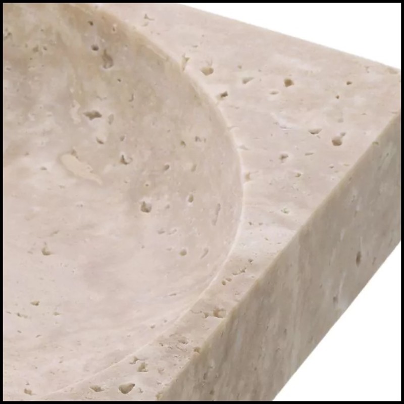 Elle est habilement réalisée en travertin, une pierre naturelle riche en détails et en textures.